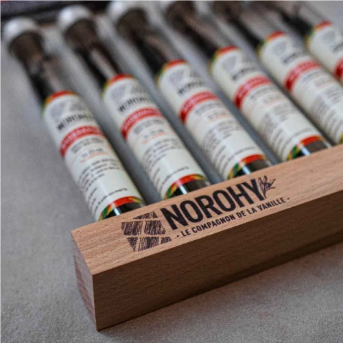 "Noro" en "Rohy" betekenen respectievelijk "licht" en "band" in het Malagasi. De naam vat perfect de wens samen om een band te smeden tussen producenten en chefs zodat dit fascinerende ingrediënt de aandacht krijgt die het verdient. Norohy garandeert hoge kwaliteit standaarden aan de vanille wat zorgt voor een uitzonderlijk mooi aroma. Daarnaast is de vanille van Norohy 100% traceerbaar dus ook ethisch verantwoord om te gebruiken in je creaties.