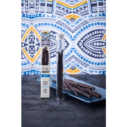 Deze Tahiti vanille wordt door 200 boeren op het eiland Tahaa geteeld en door een partner op het eiland Raiatea verder verwerkt. Tahitiaanse vanille barst van een aromatisch boeket dat bestaat uit meer dan 200 moleculen. De vette aromarijke bonen hebben tonen van anijs en bloemen met een vleugje amandel, tonkaboon en balsamico azijn. Deze "Haapape" variant van 18-20 cm zijn het grotere soort met subtiele tonen van chocolade. Elke koker bevat 3 stokjes.