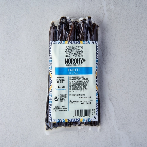 Deze Tahiti vanille wordt door 200 boeren op het eiland Tahaa geteeld en door een partner op het eiland Raiatea verder verwerkt. Tahitiaanse vanille barst van een aromatisch boeket dat bestaat uit meer dan 200 moleculen. De vette aromarijke bonen hebben tonen van anijs en bloemen met een vleugje amandel, tonkaboon en balsamico azijn. Deze "Haapape" variant van 18-20 cm zijn het grotere soort met subtiele tonen van chocolade.