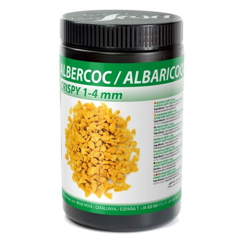 Krokant gevriesdroogde stukjes abrikoos. Gebruik deze crispies ter decoratie en om smaak toe te voegen. Deze crispies nemen vocht op, dus alleen te gebruiken voor directe consumptie en niet de gebruiken in massa's met watergehalte. De crispies blijven wel crunchie wanneer ze gebruikt worden in een massa met vetgehalte.