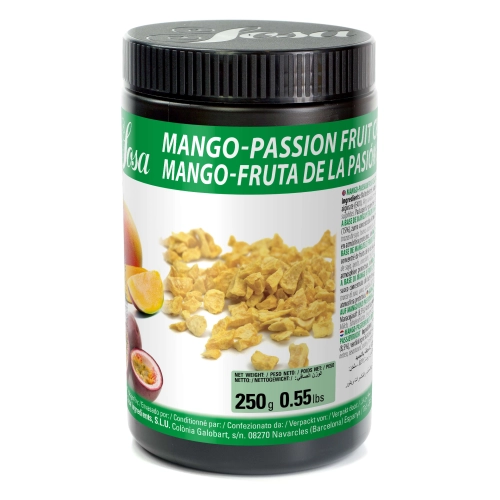 Krokant gevriesdroogde stukjes mango en passievrucht stukjes in de combi. Gebruik deze crispies ter decoratie en om smaak toe te voegen. Deze crispies nemen vocht op, dus alleen te gebruiken voor directe consumptie en niet de gebruiken in massa's met watergehalte. De crispies blijven wel crunchie wanneer ze gebruikt worden in een massa met vetgehalte.