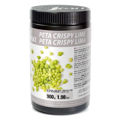 Peta Crispies zorgen voor een knettereffect wanneer het geconsumeerd wordt. Omhult met een laagje witte chocolade in groene kleur met limoen smaak. Ideaal geschikt voor decoratie op taarten, snoep, ijs of desserts.