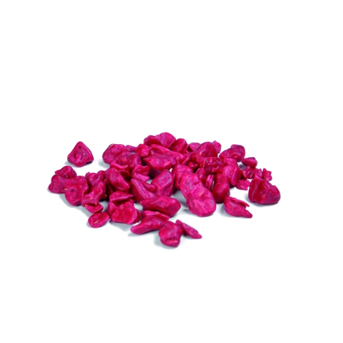 Krokant gevriesdroogde stukjes framboos omhult met een laagje cacaoboter. Dit laagje cacaoboter zorgt ervoor dat de crispy geen vocht opneemt en dus crunchy blijft. Perfect te gebruiken door een ganache, ijs of reep chocolade wat zorgt voor een heerlijke smaakvolle crunch.