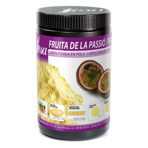 Gevriesdroogd passievrucht poeder dat 100% natuurlijk is. Perfect voor het toevoegen van smaak en kleur aan bijvoorbeeld chocolade, cacaoboter, macarons, meringue, ijs, sauzen en dressings.