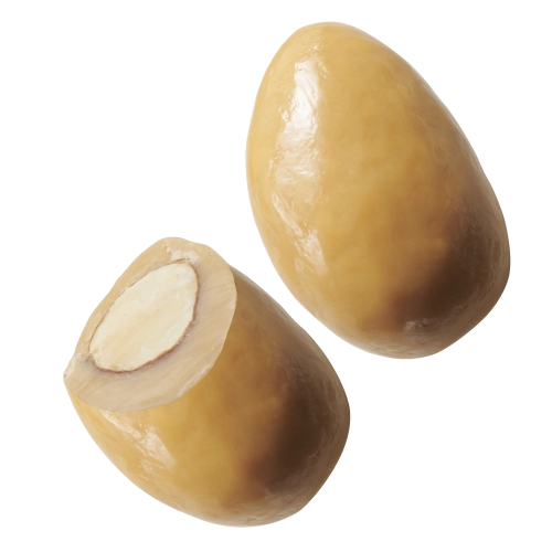 Geroosterde amandelen omhult met een laagje dulcey chocolade. Ideaal als garnering of tussendoortje.