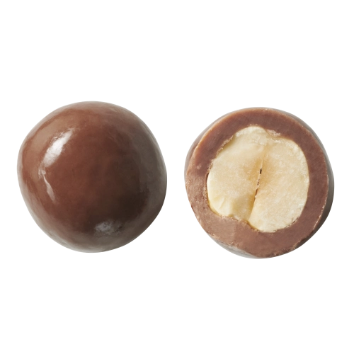 Geroosterde hazelnoten omhult met een laagje melk chocolade. Ideaal als garnering of tussendoortje.