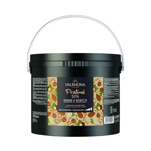Het assortiment met notenpraliné deed meer dan 90 jaar geleden haar intrede in de werkplaatsen bij Valrhona. Hier worden op een vakkundige en ambachtelijke wijze de producten geproduceerd. Het kookproces gebeurt door middel van karamelisatie, waardoor de pure smaken van de noten duidelijk naar voeren komen. De praliné kenmerkt zich door een nootachtige of karamel smaak, deze smaak wordt bereikt door het verschil in kookproces. Bij gekarameliseerde praliné wordt in een koperen ketel een authentieke karamel gemaakt. Na het grondig branden van de noten worden deze aan de karamel toegevoegd. Het mengsel wordt afgekoeld om vervolgens fijngemalen en geraffineerd te worden. Dit is al 90 jaar de kenmerkende bereidingswijze en zorgt voor intens gekarameliseerde praliné.