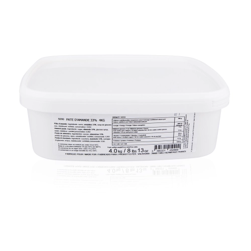 Deze amandelspijs met 33% noten is gemakkelijk te bewerken en heeft een lichte amandelsmaak.