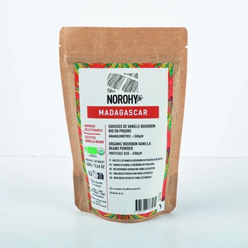 "Noro" en "Rohy" betekenen respectievelijk "licht" en "band" in het Malagasi. De naam vat perfect de wens samen om een band te smeden tussen producenten en chefs zodat dit fascinerende ingrediënt de aandacht krijgt die het verdient. Norohy garandeert hoge kwaliteit standaarden aan de vanille wat zorgt voor een uitzonderlijk mooi aroma. Daarnaast is de vanille van Norohy 100% traceerbaar dus ook ethisch verantwoord om te gebruiken in je creaties.
